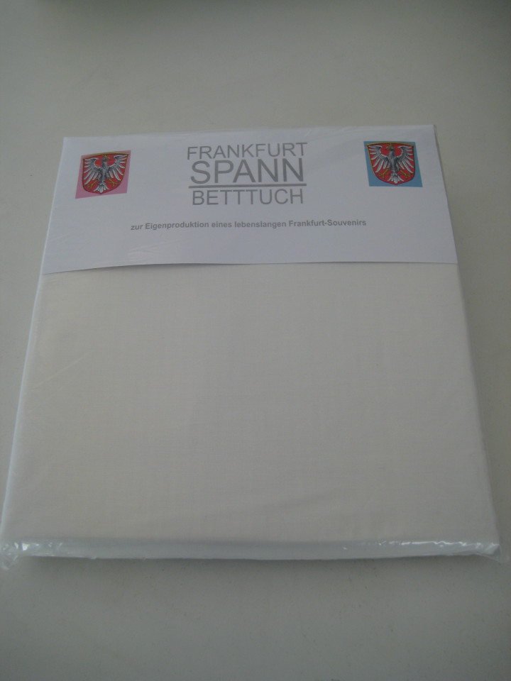 frankfurt-spannbetttuch zur Eigenproduktion eines lebenslangen Frankfurt-Souvenirs Das FRANKFURT-SPANN-BETTTUCH ist ein Projekt im Rahmen von „Souvenir-Frankfurt“. BEWERBEN SIE SICH JETZT FÜR IHRE EIGENPRODUKTION EINES LEBENSLANGEN FRANKFURT SOUVENIRS. Text/Rückseite Frankfurt-Spann-Betttuch: Mit dem Erwerb eines FRANKFURT-SPANN-BETTTUCHES zum Stückpreis von 49,90 €… Read More